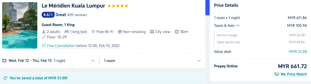 Let’s take a look at an example. Let’s say that you are a Marriott Gold member looking to book a room at Le Meridien Kuala Lumpur: