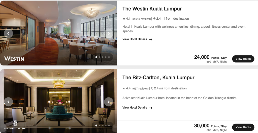 The Ritz-Carlton: RM588 / 30,000 Points = 1.96 CPP