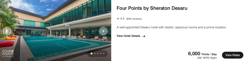 Four Points by Sheraton Desaru: RM296 / 6000 points = 4.9 CPP